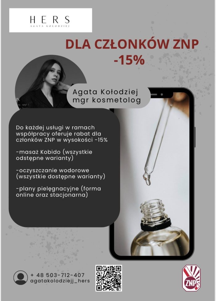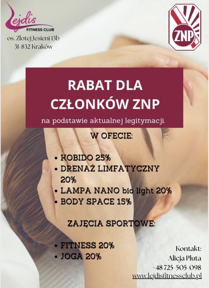 Przesyłam rabaty dla członków ZNP, wynegocjowane przez Oddział ZNP Kraków-Nowa Huta